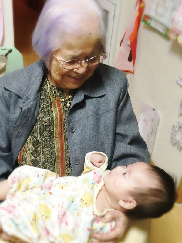 初めての子を身ごもったころ、しばらくの間、おばあちゃんの実家に住まわせてもらっていた事もあって、いつも気遣ってくれる優しいおばあちゃん。3人目が産まれてからはあいさつに行けずにいる私のために、つえを突きながら小さなアパートに駆けつけてくれた。