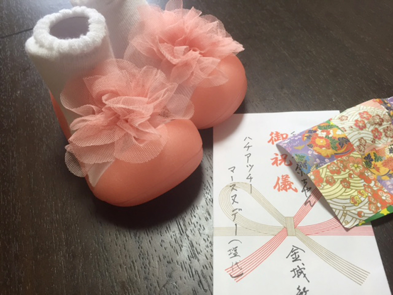 お義母さんが「今日は、首里のばーちゃんの家にも連れて行ったからさ~」と、私にお祝い袋を「はい」と。そこには、首里のおばあちゃんのシッカリした文字で、「ハチアッチー」「マースデー(塩代)」と記されていた。